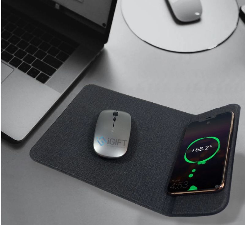 - Miếng lót chuột tích hợp sạc không dây: Đây là sản phẩm quà tặng công nghệ sáng tạo, mới mẻ kết hợp giữa miếng lót chuột với sạc không dây. Món quà in logo này rất thích hợp cho dân văn phòng, thường xuyên làm việc với máy tính nhưng bị giới hạn không gian nhỏ hẹp. Điện thoại được giữ ở vị trí thích hợp, sạc nhanh tiện lợi mà không làm gián đoạn, hay bỏ lỡ bất kỳ thông tin nào.