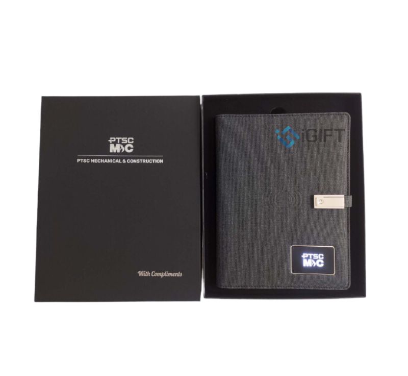 - Sổ tay kiêm sạc không dây in logo phát sáng: Với thiết kế sang trọng, chất liệu cao cấp cùng tính năng sạc không dây tiên tiến, sổ tay thông minh là người bạn đồng hành hoàn hảo cho mọi công việc vì vừa ghi chép ý tưởng, vừa sạc điện thoại một cách nhanh chóng và tiện lợi. Đây là món quà ấn tượng, thể hiện được hình ảnh chuyên nghiệp của thương hiệu.