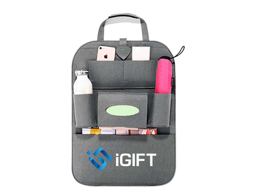 Túi Treo Đồ Sau Ghế Ô Tô một sản phẩm năng động mang nhiều tính năng nổi bật: có các ngăn đựng đồ riêng biệt với nhiều kích cỡ, có thể mở ra gập lại dễ dàng. Túi treo đồ được chia thành 7 túi bao gồm: 6 túi đựng đồ và 1 túi khăn giấy. Với diện tích lớn, túi đựng bên trong có thể để sách vở, laptop, iPad, chỗ đựng đồ uống, điện thoại, khăn ướt, khăn giấy... rất tiện lợi.Túi được thiết kế gọn nhẹ và thanh lịch với hình logo được in nổi bật sẽ đem thương hiệu của bạn tới khách hàng hiệu quả.