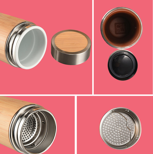 Bạn có thể tùy ý lựa chọn dung tích bình tre 350ml hoặc 450ml, lựa chọn chất liệu inox 304 trong và inox 201 ngoài, và cũng tùy ý lựa chọn lõi bình: lõi sứ, lõi đất hoặc lõi inox.