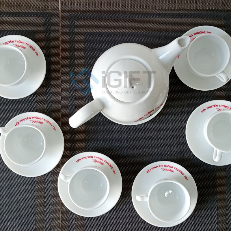 iGIFT cung cấp bộ ấm tách trà in logo theo yêu cầu, được thiết kế – sản xuất – đóng gói theo tiêu chuẩn quà tặng doanh nghiệp, phù hợp cho các chương trình tri ân, quà tặng nội bộ hoặc sự kiện thương hiệu.