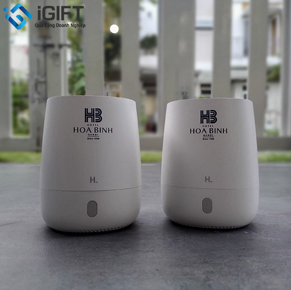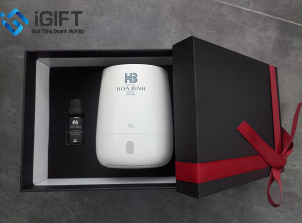 Combo quà tặng máy tạo độ ẩm Happy Life và tinh dầu thể hiện sự tinh tế của Khách sạn Hoà Bình trong những món quà tặng cho khách hàng và đối tác. Thấu hiểu những khách hàng đối tác thường xuyên phải ngồi làm việc trong văn phòng máy lạnh gây khô cho da và không khí xung quanh bí bách. Khách sạn Hoà Bình đã cùng IGIFT tạo nên một combo quà tặng có thể giải quyết được nhu cầu hằng ngày của người được tặng. Ngoài ra việc in logo lên máy tạo độ ẩm Happy Life giúp cho Lineage có thể quảng bá thương hiệu một cách thường xuyên và tự nhiên thông qua những lần sử dụng của khách hàng.
