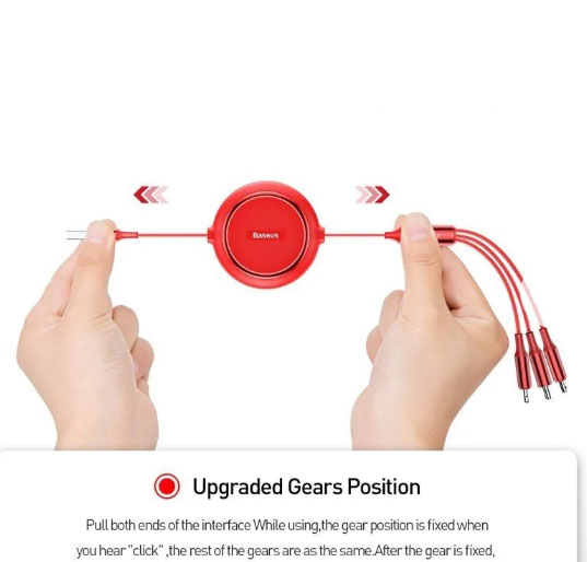 Model: Cáp sạc dây rút 3 đầu Baseus Golden Loop 3 in 1 Elastic