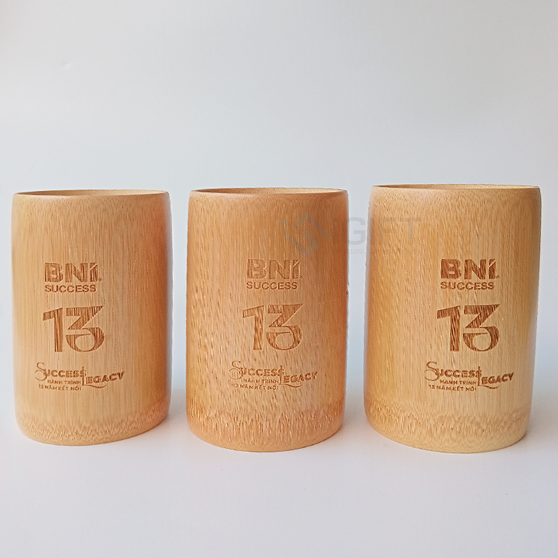Cốc được thiết kế đơn giản, tinh gọn, giữ nguyên màu sắc và vân tự nhiên của tre – tạo cảm giác gần gũi, sang trọng và phù hợp với mọi không gian làm việc, sự kiện hoặc quà tặng thương hiệu.