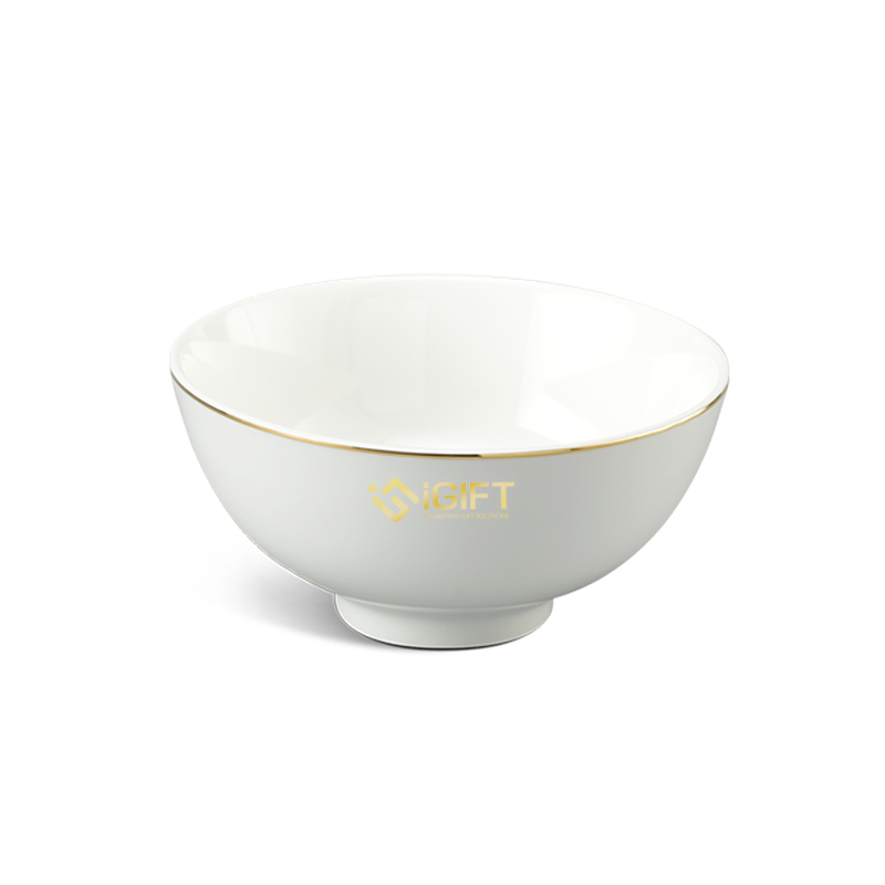 iGIFT cung cấp dịch vụ in logo theo yêu cầu trên từng sản phẩm bộ đồ ăn Jasmine. Logo có thể in bằng vàng ánh kim hoặc nhũ vàng nổi bật, hài hòa với thiết kế viền chỉ vàng. Đây là cách để doanh nghiệp để lại dấu ấn thương hiệu bền vững trong đời sống hàng ngày của khách hàng, đối tác.