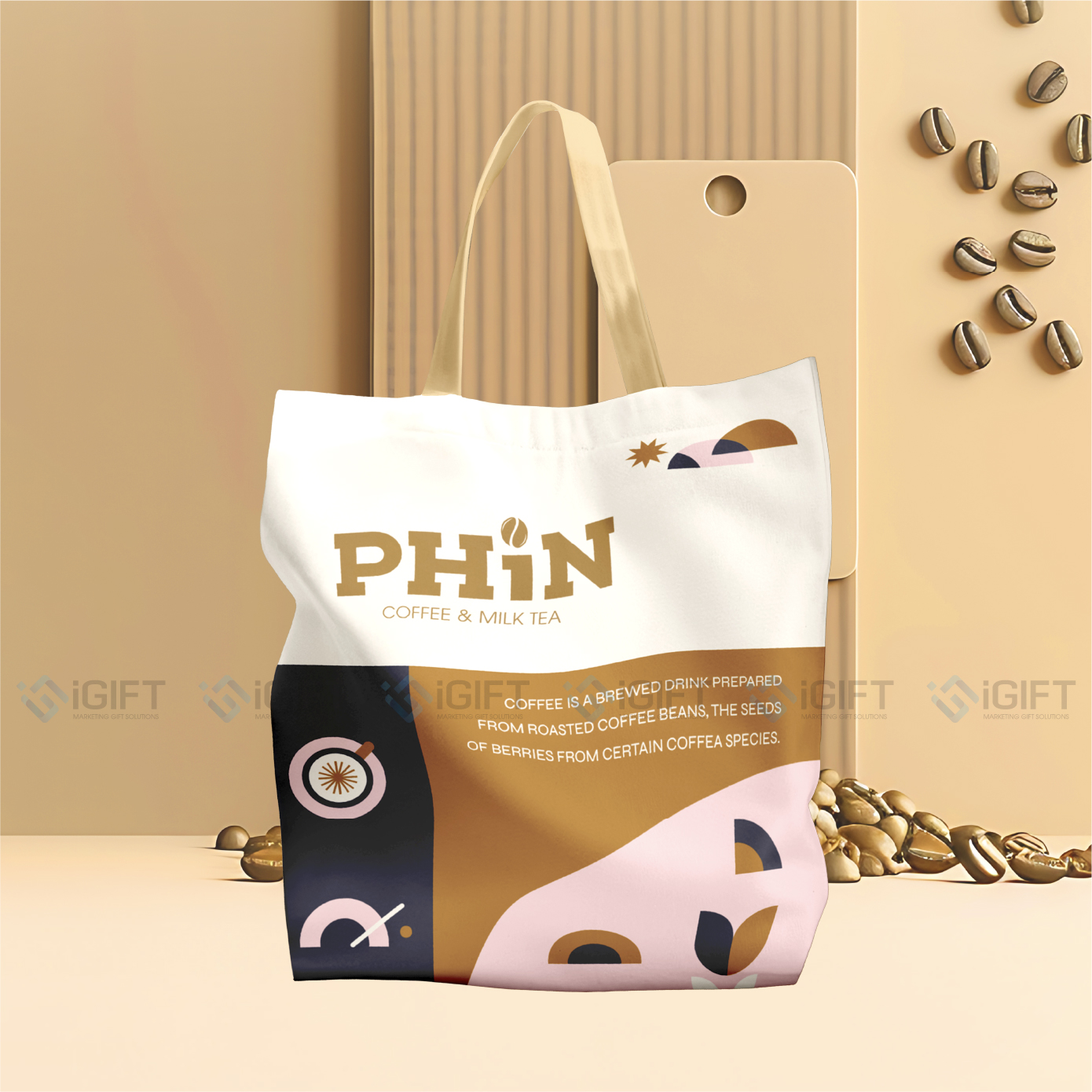 Tất cả sản phẩm trong bộ nhận diện đều được thiết kế và in ấn theo yêu cầu cụ thể của khách hàng. iGIFT cung cấp đa dạng chất liệu từ túi canvas dày dặn, túi giữ nhiệt lớp lót bạc chống nóng, ly nhựa hai lớp sang trọng cho đến bình giữ nhiệt inox cao cấp. Màu sắc, kích thước và kiểu dáng đều có thể làm theo yêu cầu nhằm đảm bảo phù hợp với tông màu thương hiệu cũng như tính tiện dụng khi sử dụng thực tế. Mỗi sản phẩm không chỉ mang tính thẩm mỹ mà còn đảm bảo độ bền, đáp ứng nhu cầu sử dụng lâu dài trong ngành F&B