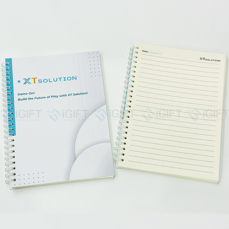 - Sổ lò xo A5 bìa cứng: Với kích thước tiêu chuẩn, thiết kế gọn gàng, tiện lợi cho việc mang theo khi đi họp, làm việc hoặc học tập. Chất liệu bìa cứng giúp bảo vệ trang giấy bên trong, đồng thời mang lại cảm giác chuyên nghiệp khi sử dụng. Bên trong là giấy định lượng cao, viết mượt, không lem mực – phù hợp cho mọi loại bút. Logo thương hiệu có thể được in trên bìa, tăng độ nhận diện mạnh mẽ và thẩm mỹ cao.