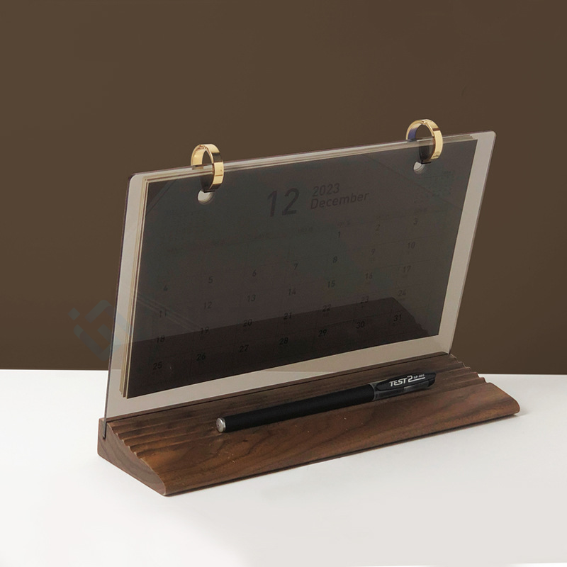 Đế lịch được làm từ gỗ óc chó tự nhiên, nổi bật với vân gỗ đẹp mắt, độ bền cao và màu nâu trầm sang trọng. Kết hợp cùng giấy C sắc nét và khoen kim loại mạ sáng bóng, sản phẩm mang đến sự chắc chắn và thẩm mỹ vượt trội. Đây là sự lựa chọn lý tưởng cho những doanh nghiệp muốn gửi gắm hình ảnh chuyên nghiệp và đẳng cấp.