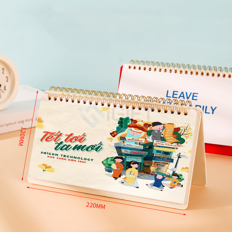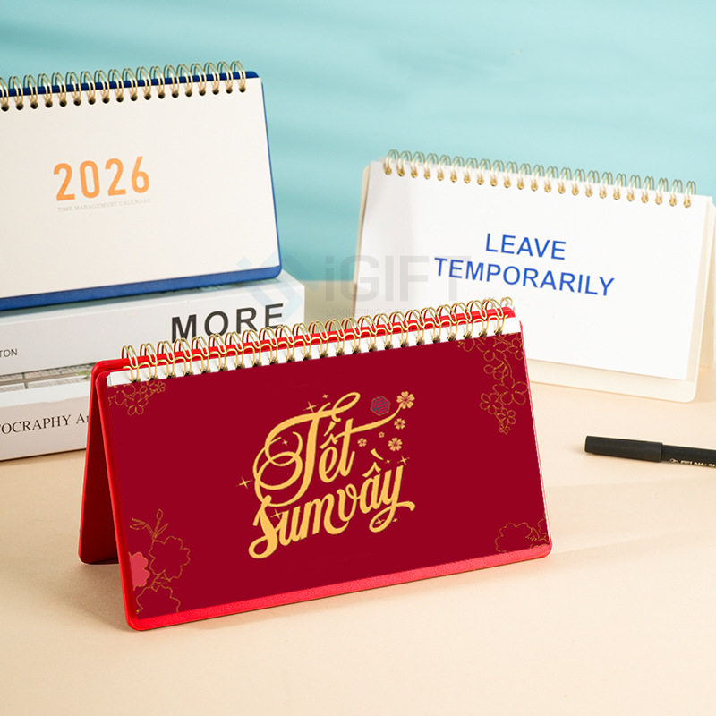 Có thể nói, lịch lò xo để bàn 2026 không chỉ là món quà Tết ý nghĩa, mà còn là giải pháp quà tặng toàn diện cho doanh nghiệp. Một cuốn lịch tinh tế, kết hợp cùng hộp và túi quà sang trọng, sẽ giúp doanh nghiệp gửi gắm lời chúc năm mới trọn vẹn, đồng thời khẳng định vị thế thương hiệu trong mắt khách hàng và đối tác.