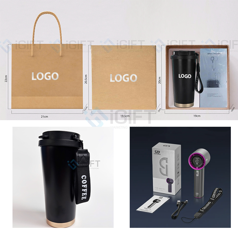 Set quà tặng hộp túi kraft gồm quạt điện mini và bình giữ nhiệt mang lại giá trị sử dụng cao, thể hiện sự chuyên nghiệp và quan tâm của doanh nghiệp đến khách hàng, đối tác và nhân viên. Bao bì kraft thân thiện môi trường, dễ gia công và in ấn giúp tối ưu trải nghiệm mở hộp (unboxing) — yếu tố quan trọng để tăng nhận diện thương hiệu. Với khả năng in logo trên từng sản phẩm và hộp/túi, bộ quà vừa có tính quảng bá lâu dài, vừa phù hợp để tặng trong hội nghị, sự kiện, quà tri ân hoặc quà nội bộ.