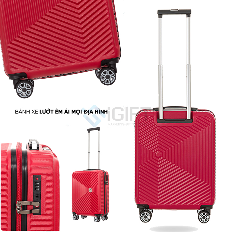 Chiếc vali in logo này được gia công từ nhựa PP cao cấp, không chỉ nhẹ mà còn chống va đập hiệu quả, giúp bảo vệ hành lý an toàn tối đa. Đặc biệt, lớp bề mặt nhám 3D hạn chế trầy xước, dễ vệ sinh sau khi sử dụng. Đa dạng màu sắc như nâu, cam, vàng, be, xanh, xám, đỏ phù hợp với nhiều phong cách cá nhân và định hướng thương hiệu khác nhau. Với thiết kế hiện đại, vali Veres AB1195 không chỉ là một vật dụng tiện ích mà còn là công cụ truyền thông hiệu quả cho thương hiệu khi được in logo theo yêu cầu.