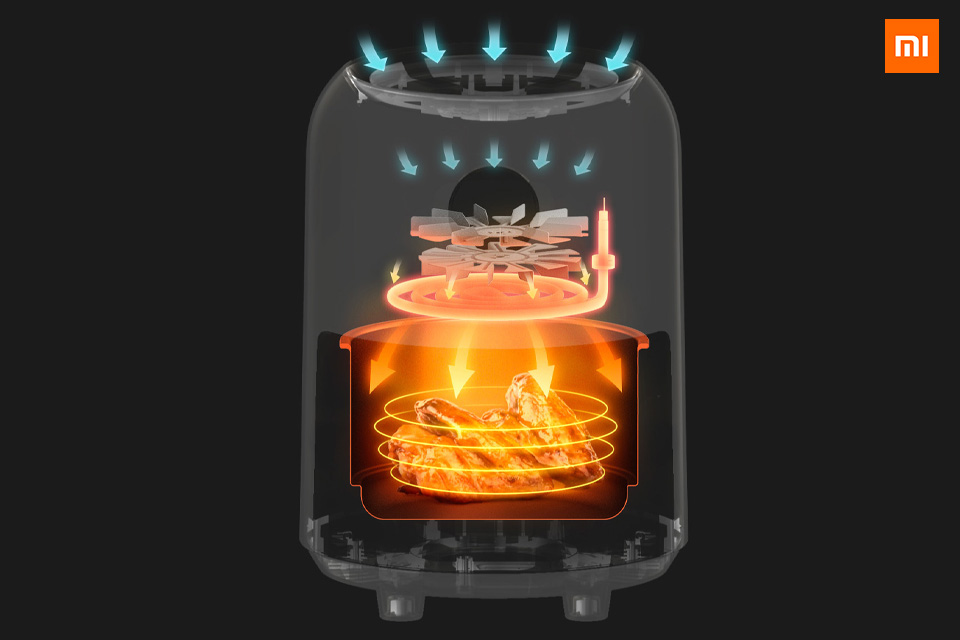 Nồi chiên không dầu hay còn gọi là nồi chiên không khí được trang bị cơ chế làm chín thức ăn bằng khí nóng mà không dùng đến dầu ăn, đảm bảo an toàn sức khỏe. Cụ thể Xiaomi Youpan 2208T được trang bị ống làm nóng bằng thép không gỉ 304 cùng công nghệ lưu thông không khí tốc độ cao 360°, làm chín hoàn toàn thức ăn ở mọi mặt trong thời gian ngắn, đẩy chất béo trong thực phẩm tạo thành bề mặt vàng giòn mà vẫn giữ được chất dinh dưỡng của sản phẩm.