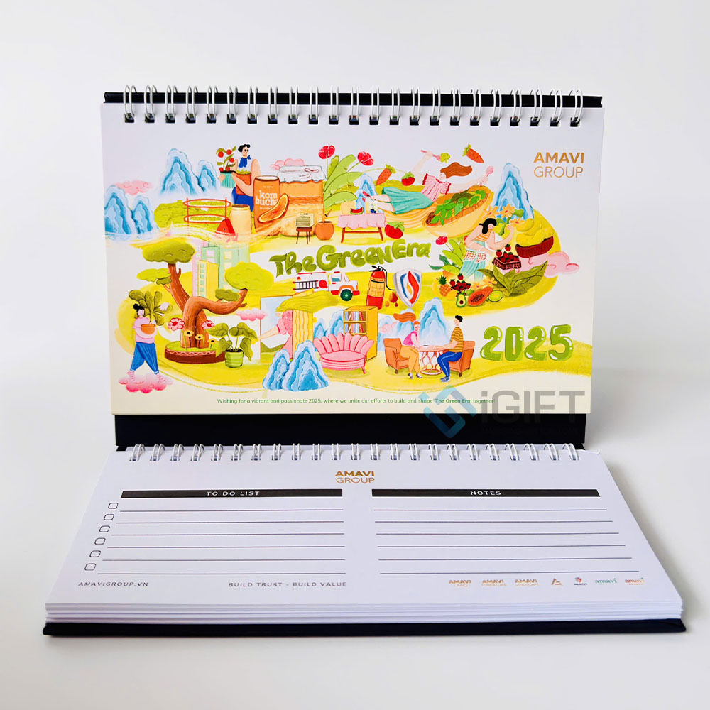 Phần đế lịch được thiết kế chắc chắn, đảm bảo sự ổn định khi đặt trên bàn. Logo của doanh nghiệp được in nổi bật tại 1 vị trí trên đế, tạo dấu ấn nhận diện thương hiệu rõ ràng, chuyên nghiệp.