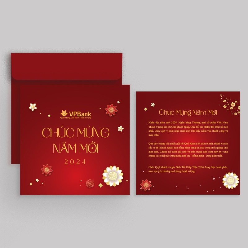 Thư cảm ơn là cách tuyệt vời để doanh nghiệp gửi gắm tình cảm, sự tri ân và những lời chúc tốt đẹp đến khách hàng, đối tác hoặc nhân viên. Nội dung thư bao gồm lời chúc Tết kèm những lời cảm ơn sâu sắc vì đã đồng hành cùng doanh nghiệp trong năm qua. Thiết kế thư thường sử dụng giấy mỹ thuật, họa tiết hoa văn Tết, hình ảnh hoa đào, hoa mai, chữ “Phúc”, “Lộc”, “Thọ” kết hợp với logo và màu sắc thương hiệu. Bức thư mang lại cảm giác gần gũi và sự trân trọng, góp phần gắn kết mối quan hệ với khách hàng, đối tác.
