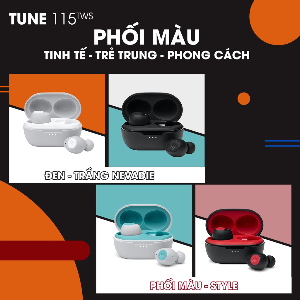 Tai nghe JBL TUNE 115TWS là tai nghe True Wireless mới nhất được JBL ra mắt trong năm 2021. Với Âm Bass mạnh mẽ cùng nhiều công năng tiện lợi, phù hợp cho giới trẻ năng động.