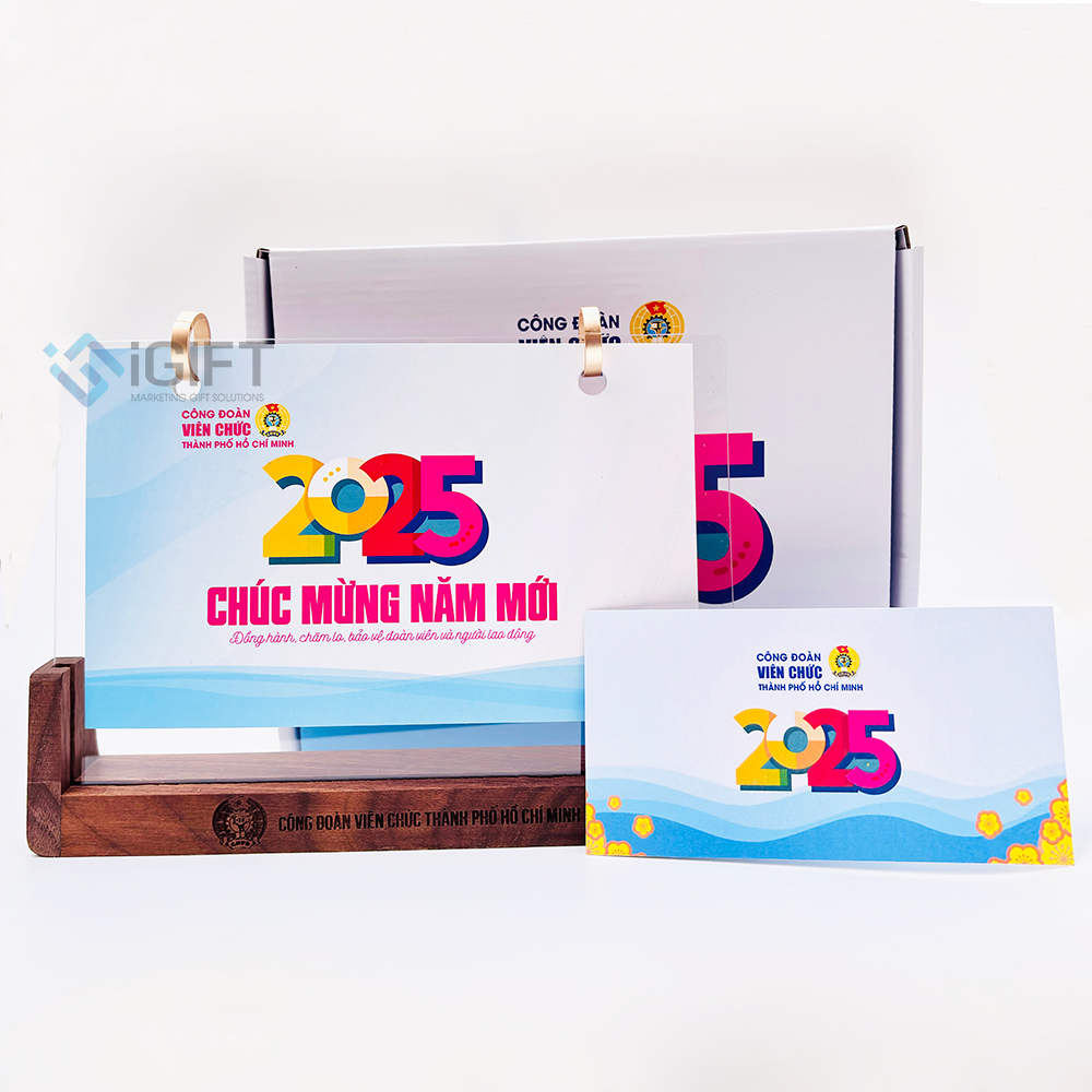 Không chỉ cung cấp lịch đế gỗ cao cấp, iGIFT còn là đơn vị sản xuất – gia công – in ấn quà tặng doanh nghiệp trọn gói, bao gồm: quà tặng văn phòng, quà Tết, phụ kiện khắc logo, hộp quà và vật phẩm quảng bá thương hiệu.