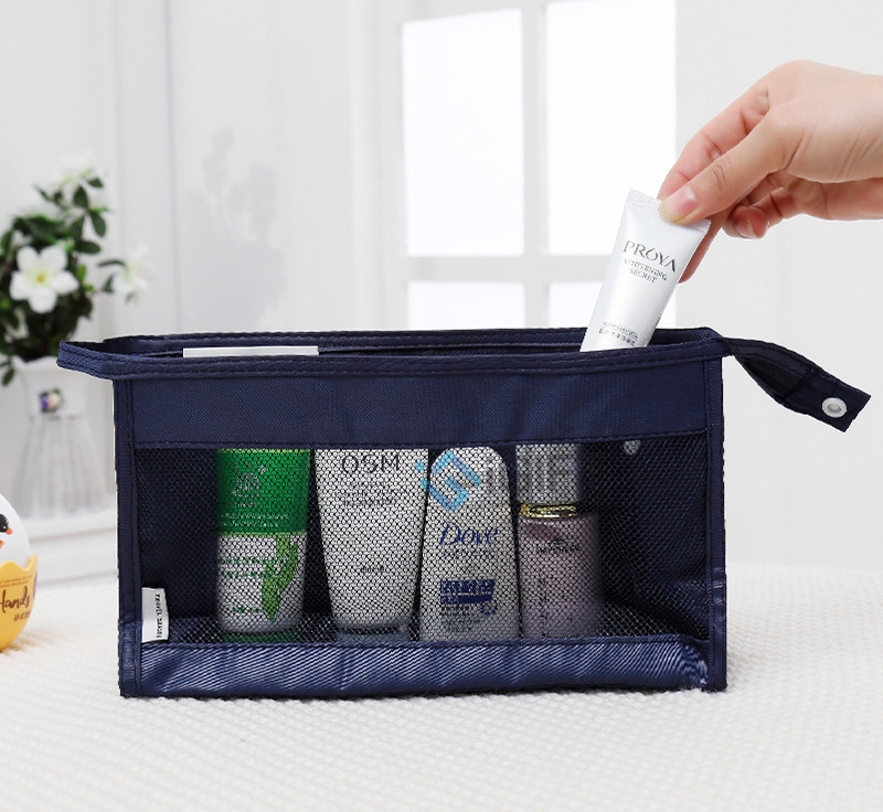 Túi vải mini đựng mỹ phẩm được làm từ chất liệu vải polyester dày dặn, bền màu và chống thấm nước, kết hợp thêm vải lưới giúp thoáng khí, dễ dàng nhìn thấy các sản phẩm bên trong. Túi có dây khóa kéo chắc chắn để giữ đồ vật, ngoài ra túi còn có quai xách nhỏ giúp dễ dàng cầm nắm, di chuyển, nhỏ gọn mang theo khắp nơi và vẫn giữ đồ vật gọn gàng, dễ tìm thấy.