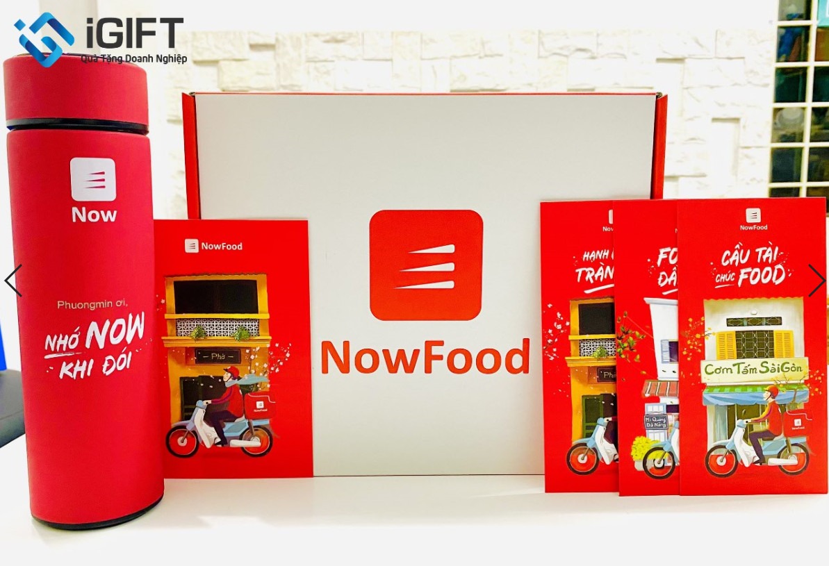 Bộ quà tặng tết Lì xì - Thiệp Tết - Bình giữ nhiệt - Sổ tay in logo thương hiệu Now bao gồm :
