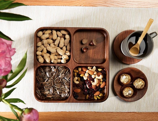 Khay đựng mứt, trái cây, hạt...bằng gỗ vừa thân thiện với môi trường, vừa lịch sự tao nhã, thích hợp để trong phòng khách, phòng đọc sách...