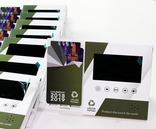 Video brochure kết hợp với lịch bàn chính là sản phẩm kế thừa từ những tấm thiệp chúc mừng, catalogue bằng giấy truyền thống, đặc biệt là lịch bàn Tết mỗi năm bổ sung thêm công năng của MP4 là phát video hình ảnh hoặc âm nhạc, từ đó giúp cho ngành bao bì có thêm bước tiến mới, và ngành marketing càng truyền thông được sản phẩm, sự kiện với thông điệp đa chiều hoàn chỉnh hơn.