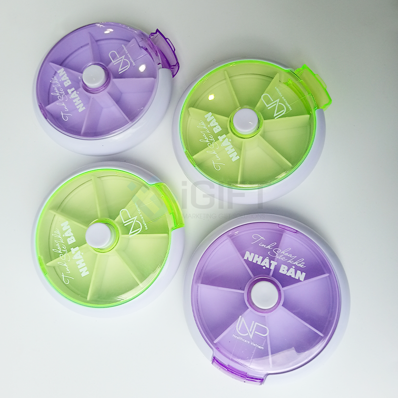 Ngoài tính năng tiện lợi trong đời sống, hộp đựng thuốc – chia thuốc 7 ngày còn được nhiều doanh nghiệp lựa chọn làm quà tặng in logo theo yêu cầu. Đây là sản phẩm mang tính thiết thực, vừa hỗ trợ chăm sóc sức khỏe người nhận, vừa giúp thương hiệu gắn bó mật thiết hơn với khách hàng. Mỗi lần sử dụng, logo trên hộp sẽ nhắc nhớ và tạo sự hiện diện lâu dài cho thương hiệu.