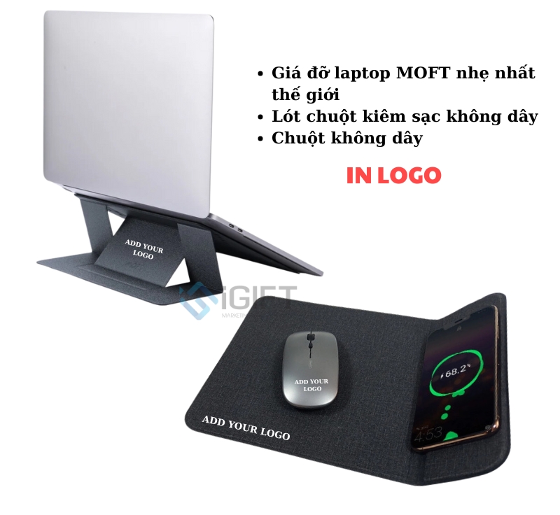 Kết hợp hoàn hảo giữa tính thẩm mỹ và công năng, bộ quà tặng văn phòng bao gồm chuột không dây, miếng lót chuột tích hợp sạc không dây và giá đỡ laptop sẽ giúp không gian làm việc trở nên hiện đại và chuyên nghiệp hơn. Các sản phẩm trong bộ quà tặng đều đến từ những thương hiệu uy tín như Logitech, MOFT, đảm bảo chất lượng và độ bền cao.