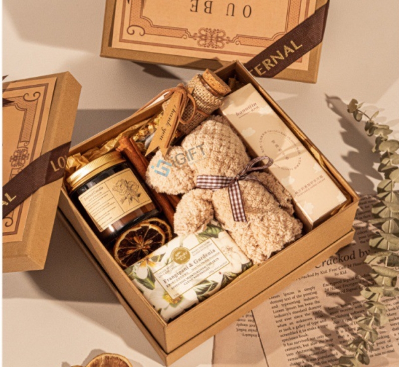 Set quà chăm sóc bản thân: Chăm sóc bản thân chưa bao giờ dễ dàng đến thế với set quà chăm sóc da. Kết hợp hoàn hảo giữa nến thơm, xà bông, hũ đường tẩy tế bào chết và khăn tắm mềm mại, set quà này sẽ giúp bạn thư giãn và làm đẹp da ngay tại nhà.