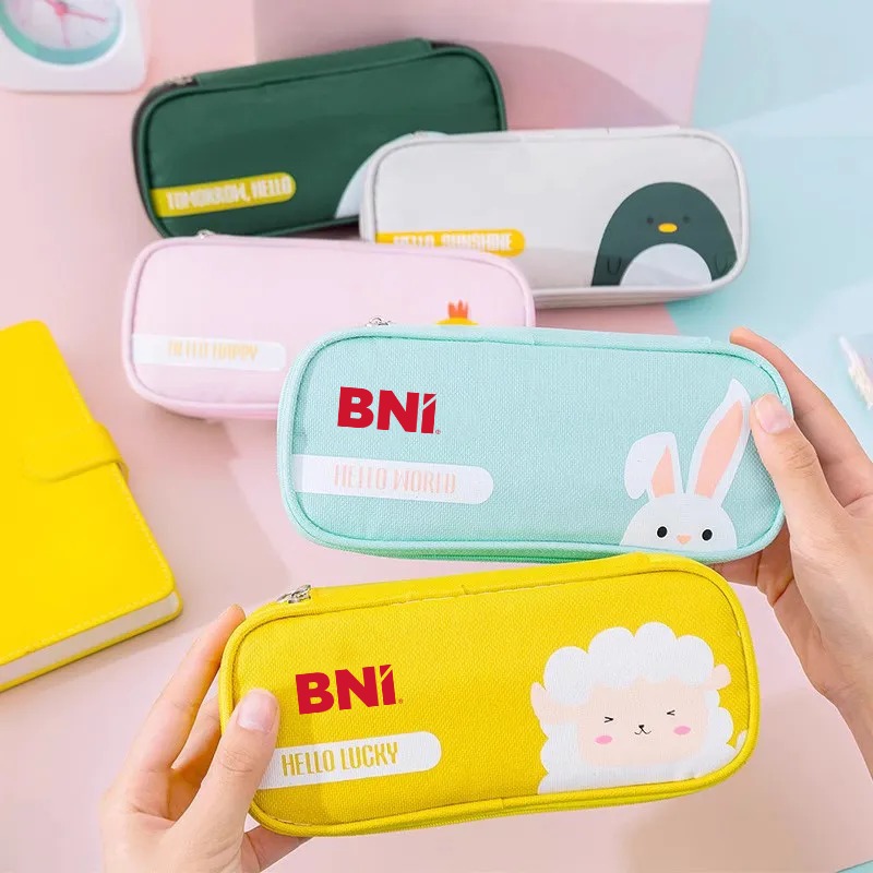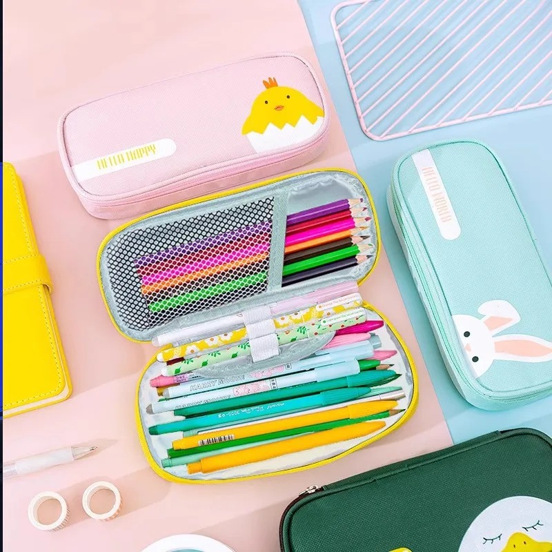 Thiết kế đa dạng và tùy chỉnh: Hộp bút có nhiều màu sắc và hình ảnh dễ thương như thỏ, cừu, và chim cánh cụt. Khách hàng có thể tùy chỉnh logo và thông điệp của doanh nghiệp lên sản phẩm, tạo nên một hộp bút độc đáo và mang dấu ấn riêng.