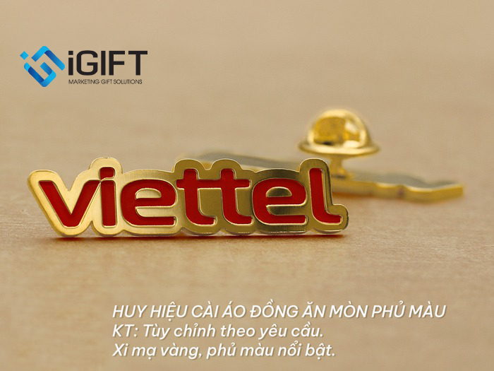 Huy hiệu cài áo mạ vàng phủ màu được sản xuất bằng công nghệ ăn mòn kim loại trên đồng nguyên chất, bề mặt xi mạ vàng, phủ màu theo thiết kế. Sản phẩm mang tính nhận diện thương hiệu rõ ràng, bền màu, sang trọng, phù hợp cho sự kiện, đồng phục công ty hoặc làm quà tặng doanh nghiệp. Gia công tỉ mỉ - giao hàng đúng tiến độ - nhận thiết kế theo yêu cầu.