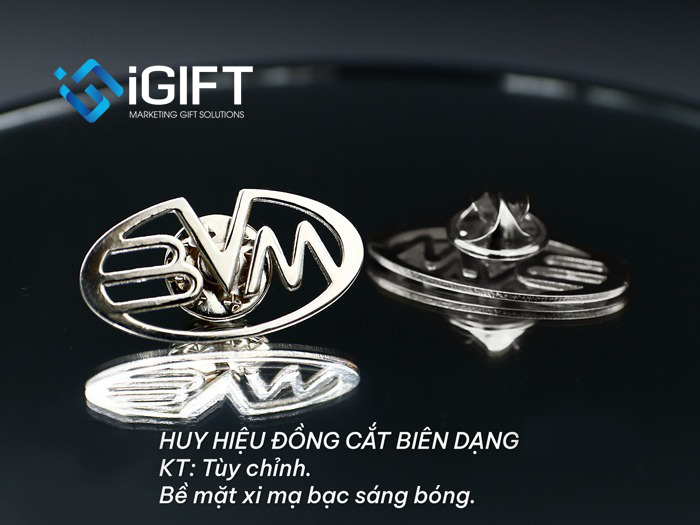 Huy hiệu cắt chữ logo mạ vàng, mạ bạc, xi màu là dòng huy hiệu kim loại cao cấp được gia công bằng công nghệ cắt CNC / laser chính xác, tạo hình logo và ký tự sắc nét tuyệt đối. Bề mặt được mạ vàng sáng bóng, mạ bạc sang trọng hoặc xi màu theo thiết kế thương hiệu, giúp huy hiệu nổi bật và chuyên nghiệp trong mọi môi trường sử dụng.
