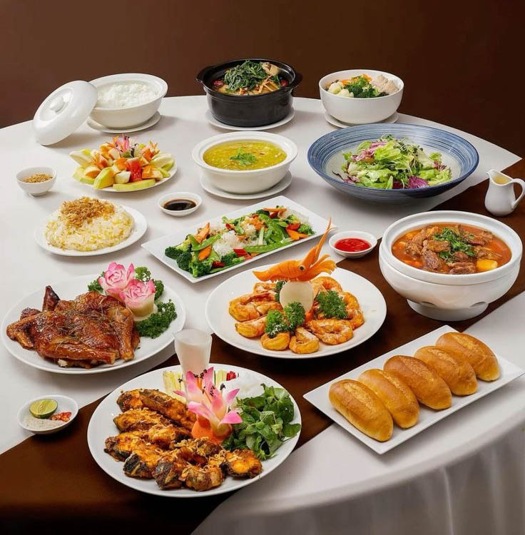 Không thể không nhắc đến thực đơn trong buổi tiệc. Một thực đơn phong phú, bao gồm các món ăn khai vị, món chính, và tráng miệng, sẽ tạo nên ấn tượng tốt với khách tham dự. Hãy đảm bảo thực đơn có sự đa dạng để phù hợp với khẩu vị của tất cả mọi người. Ngoài ra, đồ uống như rượu vang, cocktail, hoặc nước ngọt cũng nên được chuẩn bị đầy đủ để buổi tiệc thêm trọn vẹn.