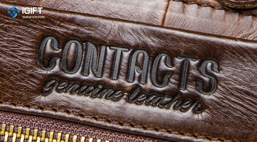 Logo thương hiệu được in dập trên sản phẩm bằng da, thực sự sang trọng và đẳng cấp