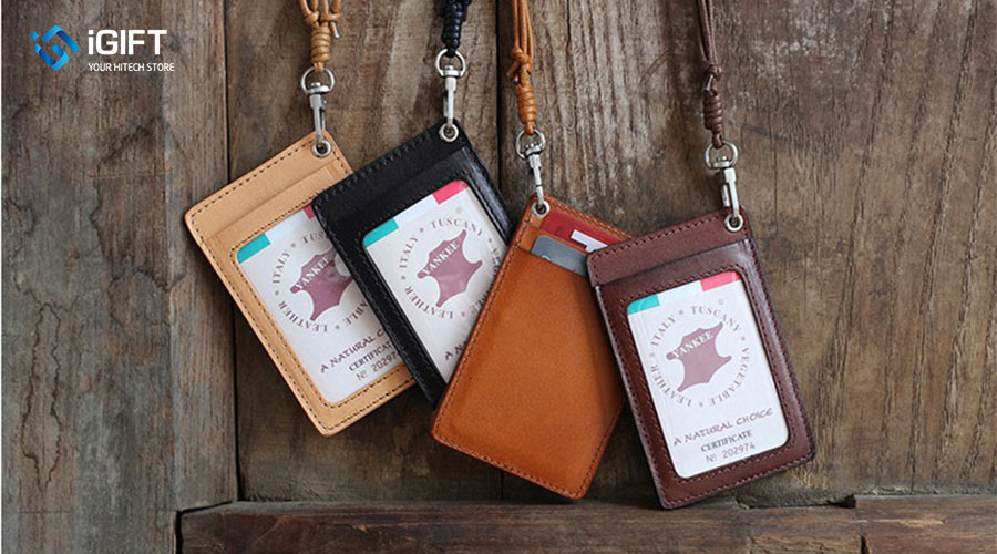 6. Thẻ nhân viên: được làm bằng da thật, bền hơn tất cả các loại thẻ nhân viên chất liệu khác. Với móc khóa tiện lợi, dễ dàng tháo ra tháo vào, mặt sau của thẻ nhân viên có thể đựng thẻ ATM, tiền, card…nếu công ty bạn đang muốn làm một bộ thẻ nhân viên mới, bền đẹp, gần gũi với tự nhiên, thì iGIFT khuyên bạn nên lựa chọn chất liệu da thật này.