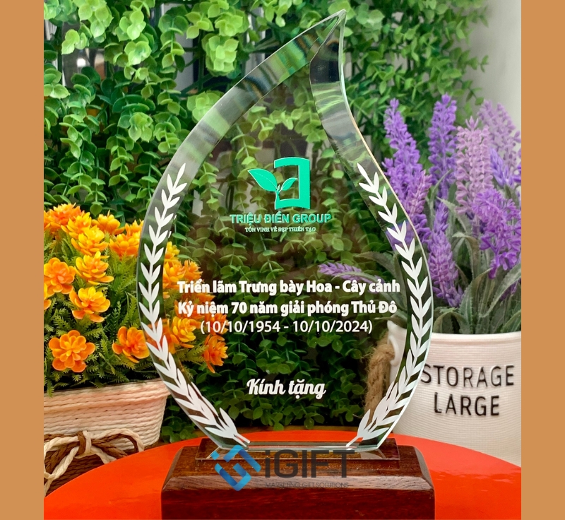 Chất liệu cao cấp: Kỷ niệm chương có thể được làm từ thủy tinh hoặc pha lê trong suốt, sáng bóng, kết hợp với các họa tiết tạo nên vẻ đẹp tinh tế và sang trọng.