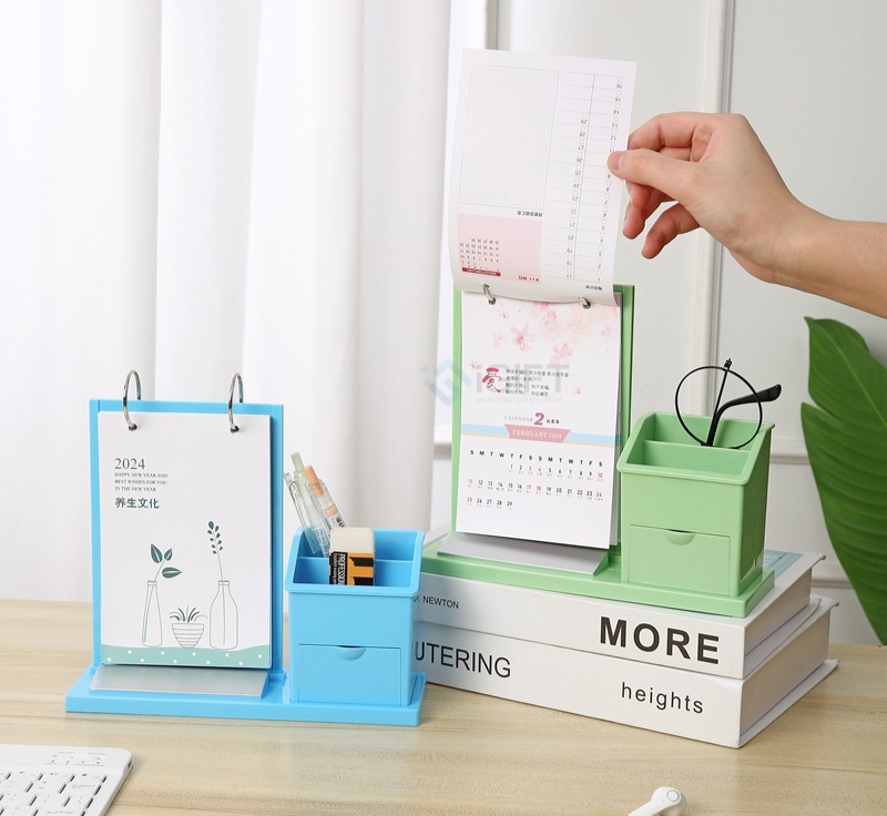 - Thiết kế tiện dụng: Lịch kết hợp hoàn hảo với chỗ đựng bút giúp bạn tiết kiệm không gian làm việc, thiết kế tiện ích, sáng tạo cũng giúp tô điểm cho không gian trở nên phong phú. Người dùng sẽ dễ dàng ghi chú, đánh dấu trực tiếp trên lịch, với chỗ để bút tiện lợi.