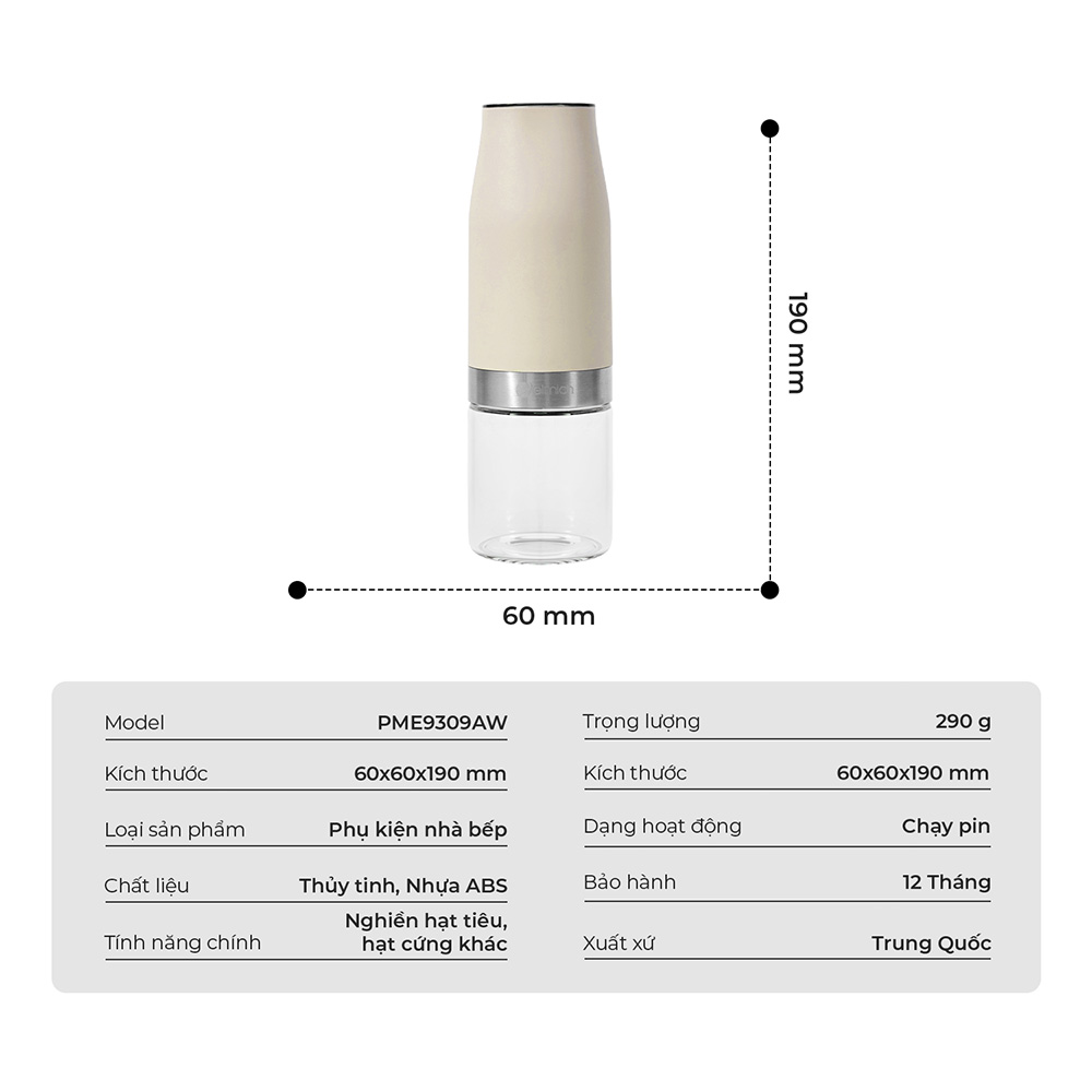 Lọ xay tiêu chạy pin Elmich PME9309AW - In logo theo yêu cầu