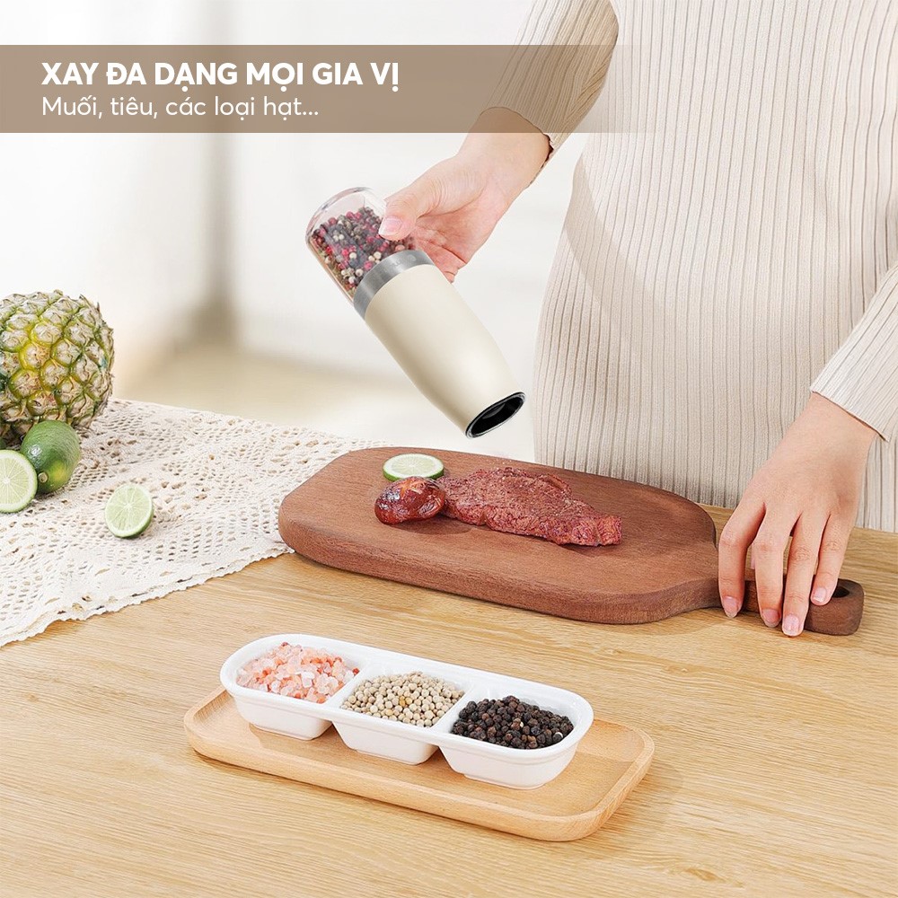 Khác với tiêu xay sẵn để lâu ngày dễ bay mùi và mất dần hương vị cay nồng đặc trưng, tiêu xay tại chỗ sẽ giữ trọn hương tinh dầu tự nhiên, vị đậm đà và mùi thơm lan tỏa hấp dẫn hơn hẳn. Nhưng việc dùng cối xay thủ công lại mất thời gian, bất tiện, đặc biệt khi tay đang bận rộn trong bếp.