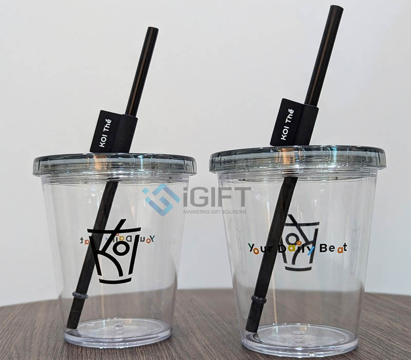 Phần nắp vặn chắc chắn, không bị đổ nước khi di chuyển, nắp phẳng có lỗ để đựng ống hút, có thể vừa với ống hút trà sữa hoặc ống hút thông thường, tạo nên một bộ sản phẩm đầy đủ, in logo lý tưởng làm quà tặng doanh nghiệp.