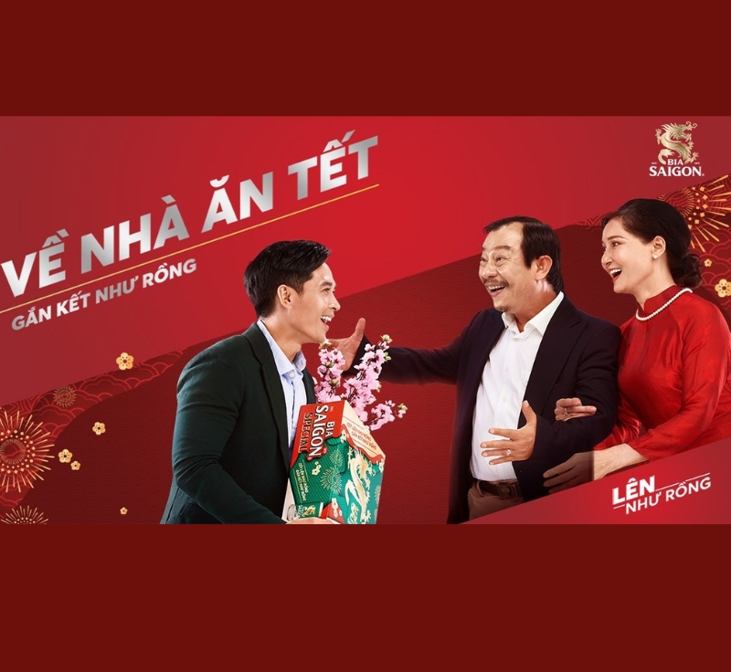 Bia Sài Gòn đã có sự kết hợp khéo léo giữa truyền thống đón Tết và biểu tượng Rồng, câu chuyện “Lộc Rồng” trong văn hóa Việt Nam. Đây là cách tinh tế để gắn kết sản phẩm với giá trị văn hóa và tình cảm gia đình.