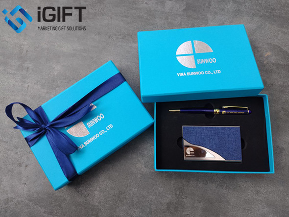 Combo Bút + hộp name card là bộ quà tặng hoàn hảo dành cho đối tác doanh nhân. Với sự kết hợp combo của ba sản phẩm gồm 1 cây bút, 1 hộp name card xinh xắn góp phần tạo nên một món quà vô cùng đẳng cấp và sang trọng dành tặng cho khách hàng và đối tác của mình. Một bộ quà tặng đồng nhất sẽ ghi điểm rất lớn và luôn nhắc người dùng sự hiện diện của bạn ở trong tâm trí của họ.