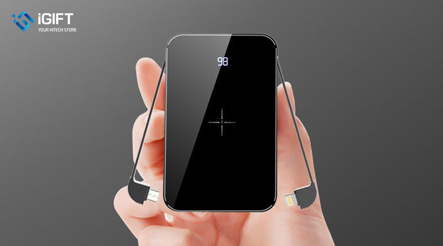 Pin dự phòng mặt kiếng, gắn sẵn 2 đầu cáp là quà tặng pin dự phòng cao cấp nhất trên thị trường cho tới thời điểm hiện tại.