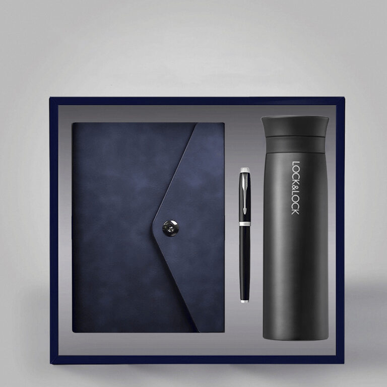 Doanh nghiệp có thể tham khảo bộ quà tặng sổ, bút, bình giữ nhiệt, usb có thể in logo theo yêu cầu. Bộ quà tặng với sự kết hợp của các món quà đồng nhất về màu tạo nên sự sang trọng và tạo điểm nhấn để thu hút mọi người