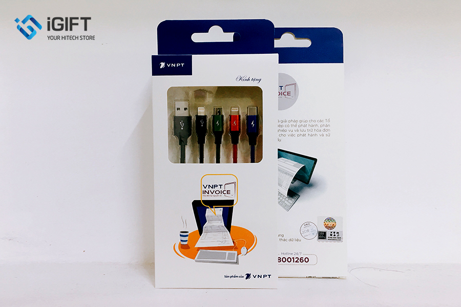 Cao cấp hơn, bạn cũng có thể lựa chọn sợi cáp 3 in 1 hay cáp 4 in 1 có sẵn tại cửa hàng quà tặng iGIFT, để in khắc logo, tặng quà cho khách hàng thân thiết hay sự kiện hội nghị của mình.