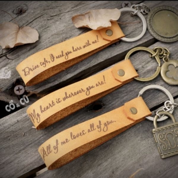 Tại IGIFT, bộ móc khóa bằng da sẽ gồm móc khóa tròn kim loại kèm với một miếng da hình chữ nhật được khắc logo lên. Đây làm bộ sản phẩm quà tặng phổ biến trong các hội nghị, sự kiện, triển lãm hoặc ra mắt sản phẩm mới. Với một mức giá hết sức hợp lý thì đây sẽ là một món quà tặng văn phòng mới để chào mừng nhân viên mới.