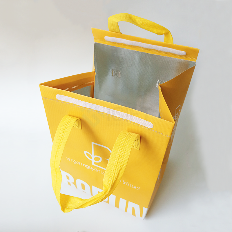 Túi được sản xuất từ vải không dệt dày dặn, có lớp bạc giữ nhiệt bên trong, giúp duy trì độ lạnh hoặc nóng của đồ uống trong thời gian dài.