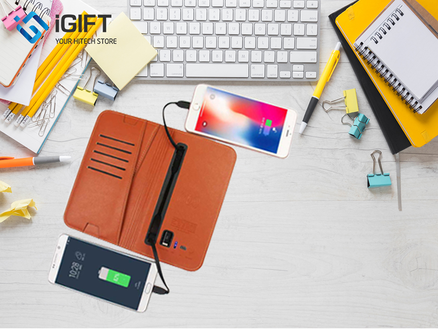 Với thiết kế nhỏ gọn và tính năng tích hợp nhiều tính năng, chúng ta có thể dễ dàng mang theo ví da tích hợp sạc dự phòng này đi bất cứ đâu.